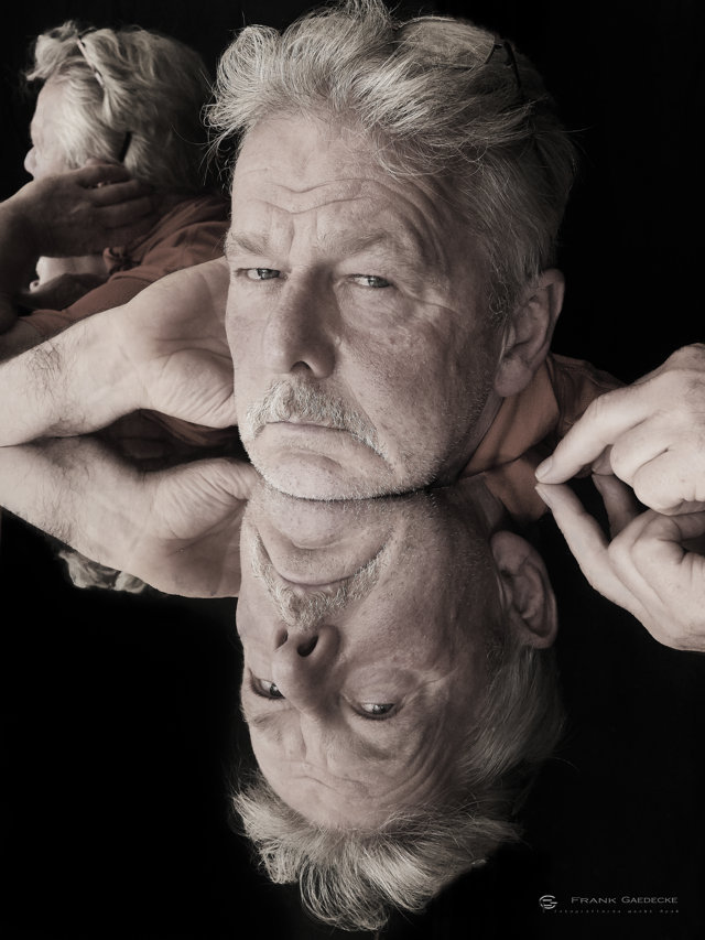 Das Fotografieren von Spiegelbildern reizt mich immer wieder. 2021 einwickelte sich die Idee, auf Grundlage einer künstlerischen Fotografie, diese Nachzustellen. Ein Freund hatte das Foto entdeckt und so experimentierten wir so lange, bis wir dieser Szene nahe kamen. Nebenbei gab es es auch recht spaßige Versuche für neue Ansätze .